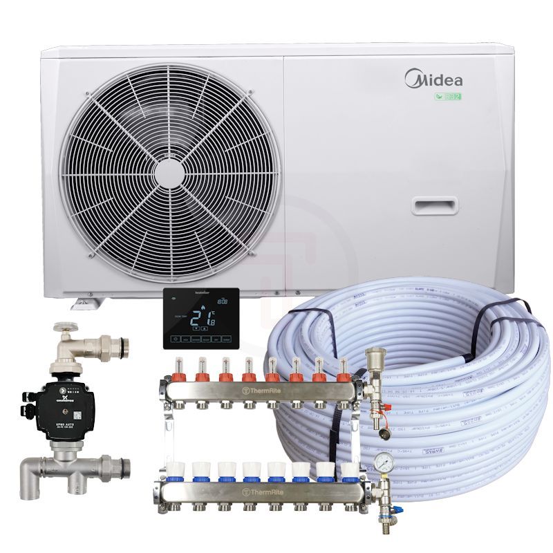 The included Midea Heatpump is sized specifically to operate seamlessly for this size floor area. It is assumed that the install will be within a new build or a renovation project with insulation values equivalent to that of a new build UK home. If your home is not insulated to new build standards then contact us and we can design accordingly.