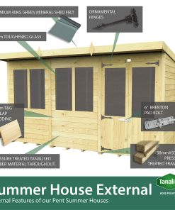 Our Pent Summer Houses are built to withstand the heavier elements of British weather, tongue and groove cladded panels which are pre-engineered to be as weather resistant as possible. No matter whatever you store inside of the wooden garden sheds, you can be sure it will be protected. With a variety of window placement options, you are able to make maximum use of the natural source of light.