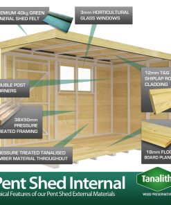 The tongue and groove construction we use in the F&F Pent Sheds is a much more substantial design than your normal overlap cladding, utilising thicker material for an overall stronger structure. with its interlocking tongue and groove design you can guarantee this will stop rain water from entering the building. With its heavy duty floor you have also the peace of mind that you wont be restricted to storing the heavier of goods within. These sheds are the ultimate garden storage building which will suit all your needs.
