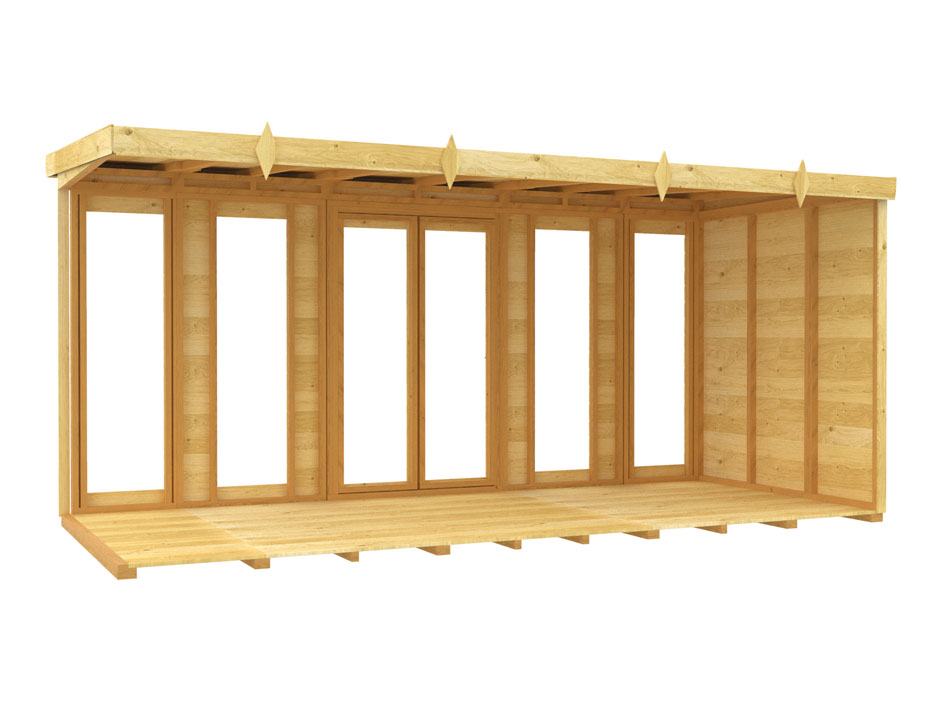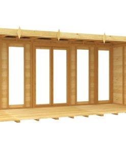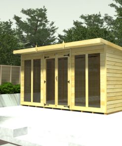 Full height toughen glass gives an added safety feature as well as maximizing use of natural light, not forgetting a beautiful look to your garden building. The pressure treated tongue and groove construction is a much more substantial design than your normal overlap cladding, utilising thicker material for an overall stronger structure. With a heavy-duty floor, you have also the peace of mind that you won’t be restricted to storing the heavier of goods within. These summer houses are the ultimate garden storage building which will suit all your needs.