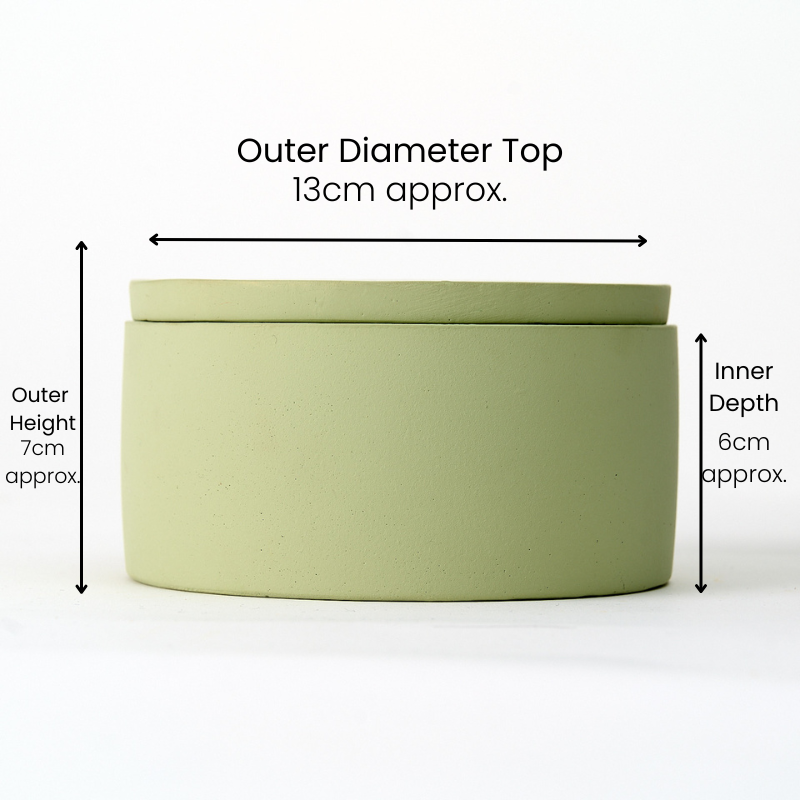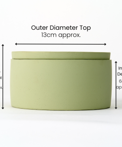 Designed for both indoor and outdoor use, this premium jar showcases durable concrete in a soothing pale green hue. The matching lid not only enhances its stylish appeal but also helps preserve and protect the candle when not in use, combining beauty with practicality.