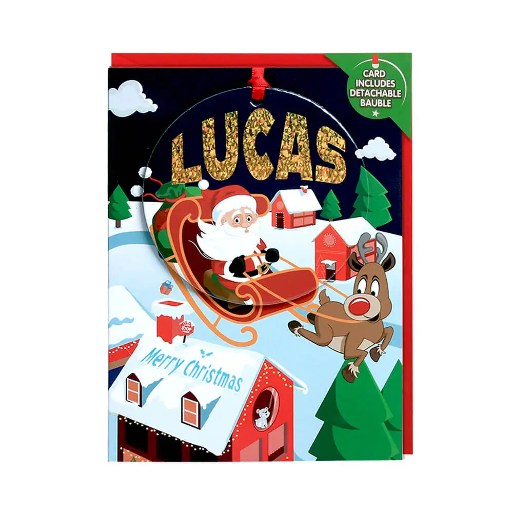 Personalised Christmas Card with Detachable Bauble Name Lucas