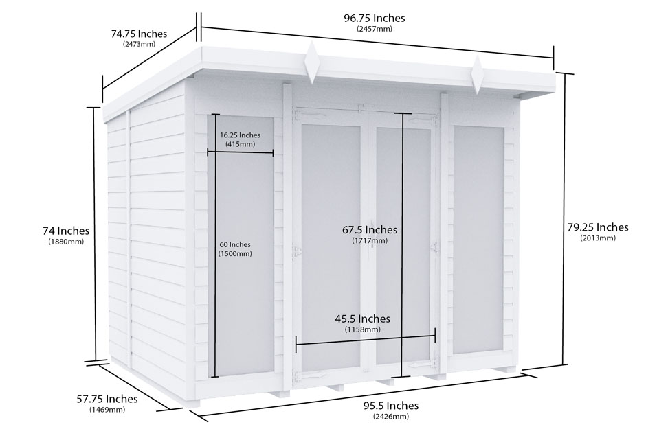 All our summer houses come in metric sizes, please see the dimensions diagram for further details.