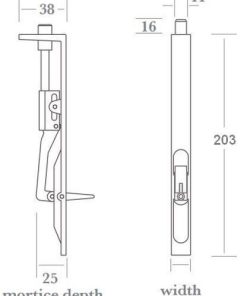 Lever action flush bolt 200 x 19mm colour coated to match the HEWI range. Steel Blue.