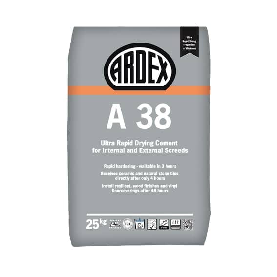 ARDEX A 38 is engineered with advanced ‘RAPIDRY PLUS FORMULA’ Technology to deliver ultra-rapid drying floor screeds suitable for both internal and external applications. This specialized formulation enables the screed to be walked on just 3 hours after application, making it an excellent choice for projects that require quick turnaround times. The screed supports the installation of ceramic and natural stone tiles as soon as 4 hours post-application, regardless of tile thickness, facilitating speedy tiling workflows. For resilient floor coverings such as carpet, vinyl, and wood, ARDEX A 38 provides a workable surface in just 48 hours, irrespective of the material’s thickness. In addition to its rapid drying capabilities, ARDEX A 38 quickly gains strength, passing the BRE Screed (ISCR) Test within 6 hours and achieving higher compressive and tensile bending strengths than traditional cement screeds after just one day, surpassing the standards typically reached by ordinary screeds after 28 days.