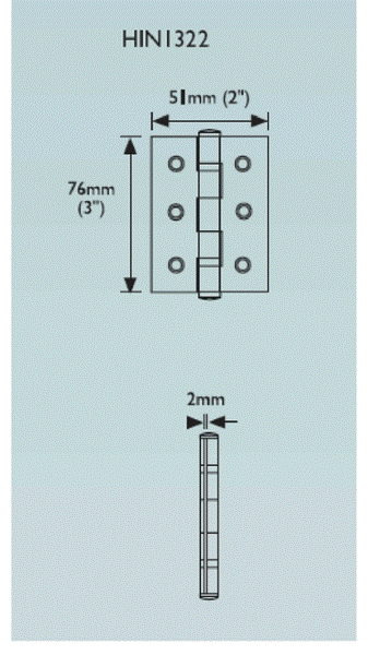 Eurospec Ballrace Butt Hinge 76x51x2mm. 10yr Mechanical Guarantee. Type 201 Bright Stainless Steel
