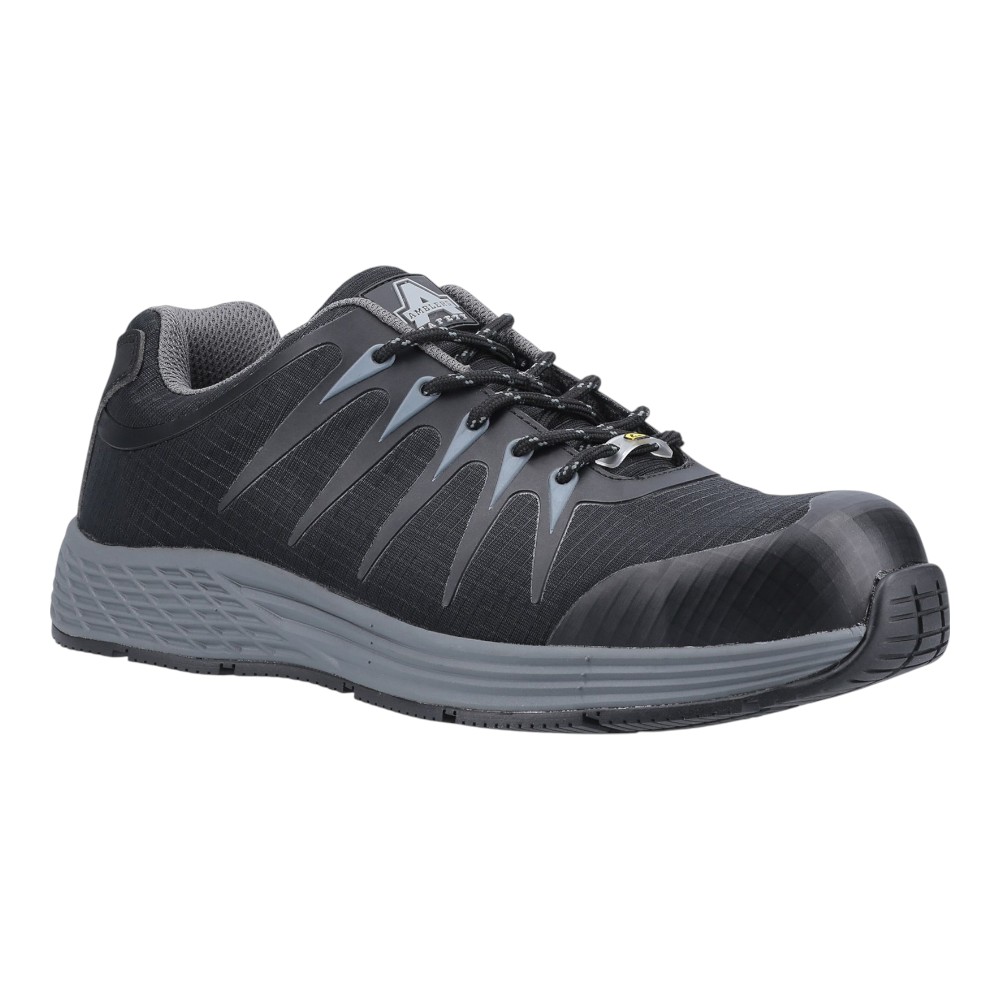 This S1P-rated ESD safety trainer is designed for high-performance comfort in fast-paced work environments. Made from a lightweight, breathable softshell and TPU upper, it’s completely metal-free, making it ideal for environments where metal detection or electrostatic control is critical. The composite toe cap provides 200-joule impact resistance, while the anti-penetration composite midsole protects against underfoot hazards to a minimum of 1100 newtons.