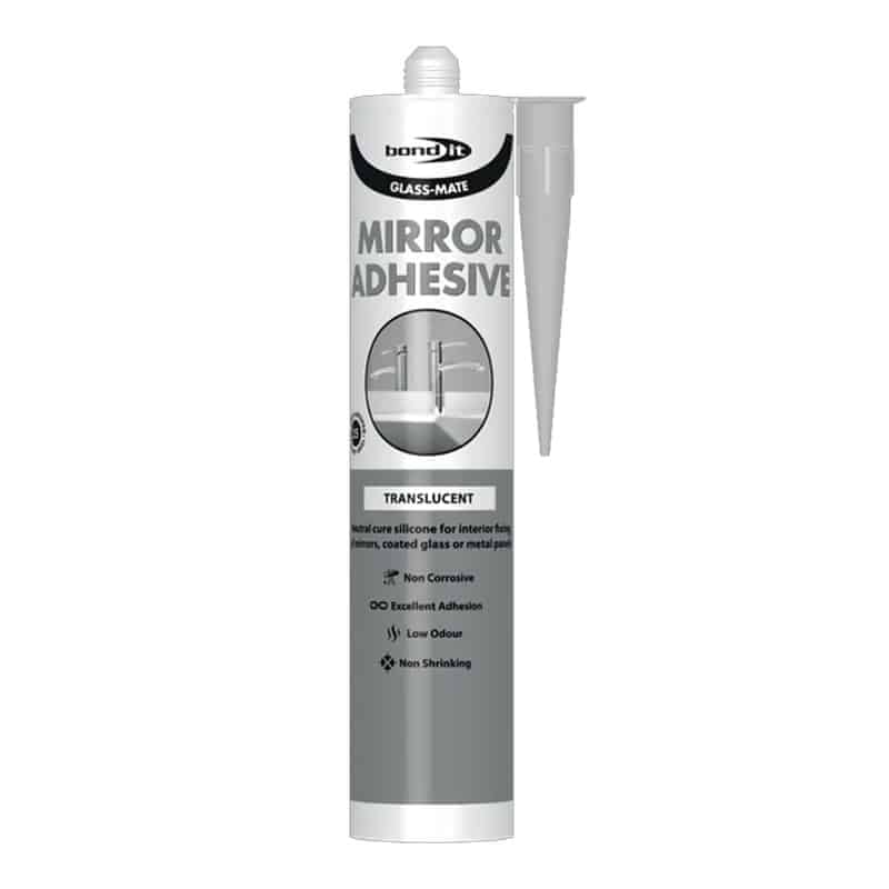Glass-Mate is a low modulus neutral cure (LMN) silicone thats specifically designed for interior mirror fixing. It offers excellent unprimed adhesion to most mirror coatings and provides outstanding resistance to heat, humidity, sunlight, ultraviolet radiation, and temperature extremes. The product accommodates thermal expansion, is non-corrosive, and odourless. It is ideal for bonding mirrors, coated glass, ceramics, enamel, metals, PVCu, polycarbonate, and treated or untreated wood to most common substrates. However, it is not suitable for structural glazing or safety glass mirrors.
