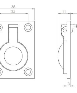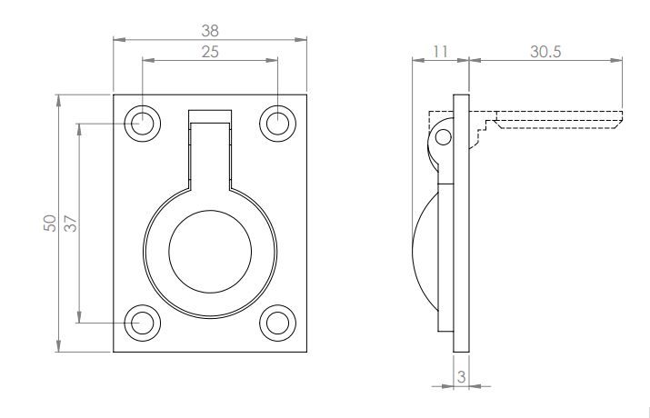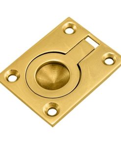 Flush ring pull. 63x50mm. Polished brass.