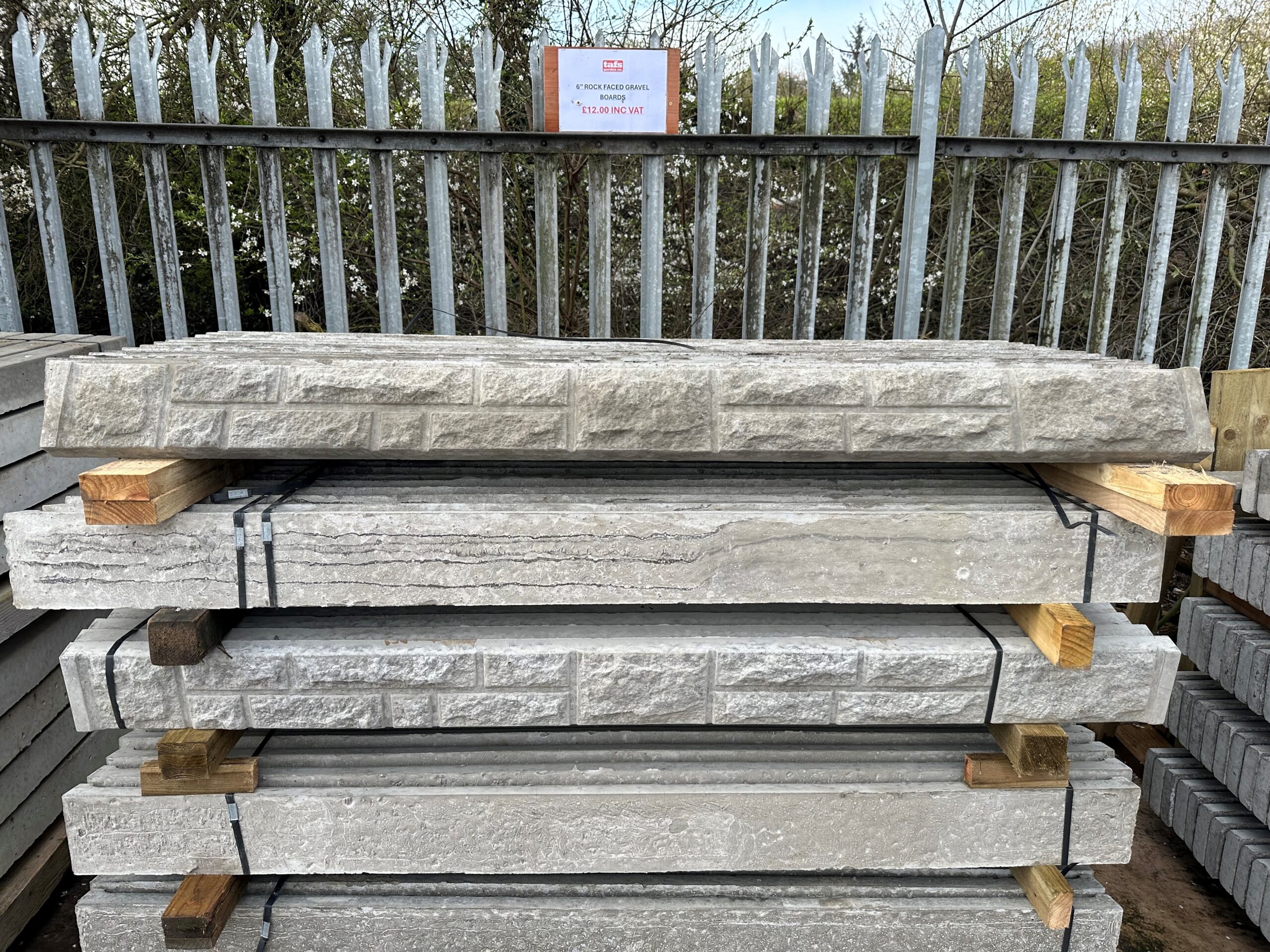 These steel reinforced concrete gravel boards are a decorative panel to fit under fence panels to prevent contact with the ground or to keep back soil on different levels.