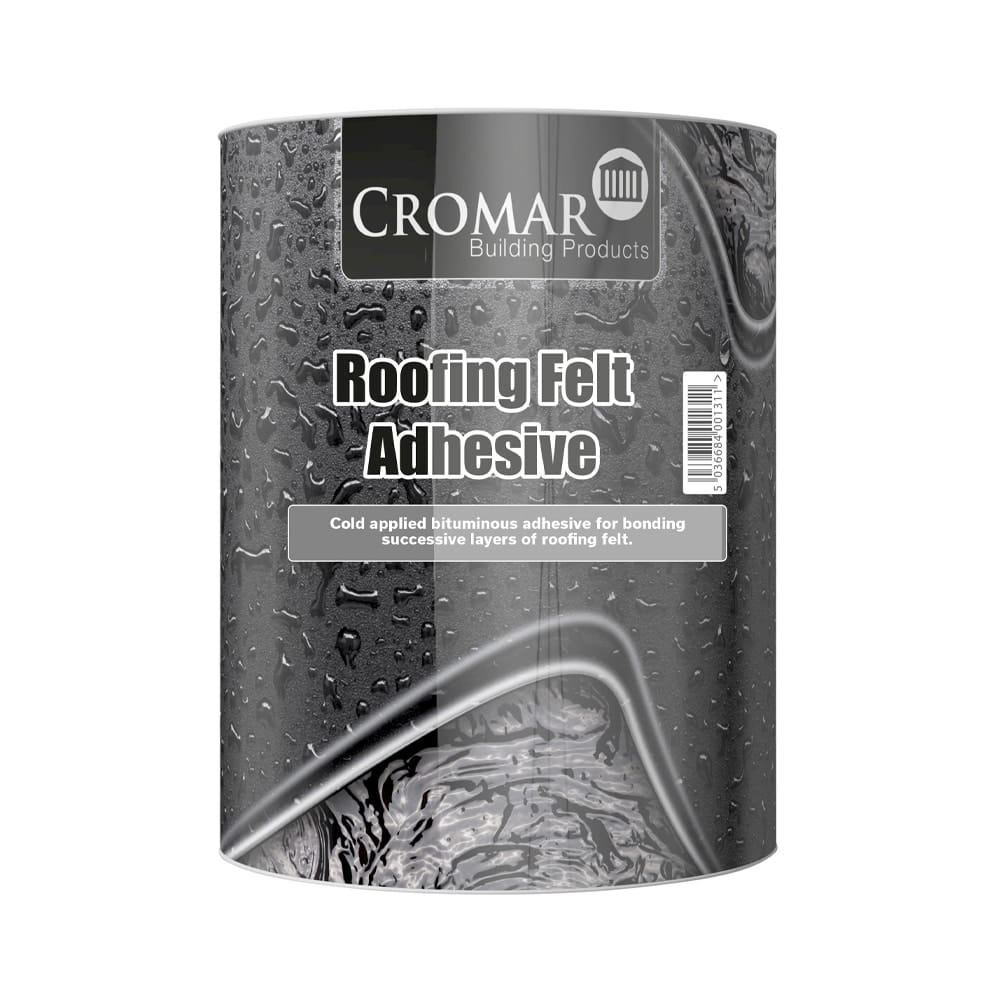 Cromar Roofing Felt Adhesive is a solvent-based, cold-applied bituminous adhesive designed to bond successive layers of roofing felt. Formulated for ease of use and safety, it creates a strong, durable bond with bituminous membranes. This versatile adhesive is ideal for bonding roofing felts to metal, timber, concrete, and asphalt, as well as for lap cement and bonding chippings to flat roofs.