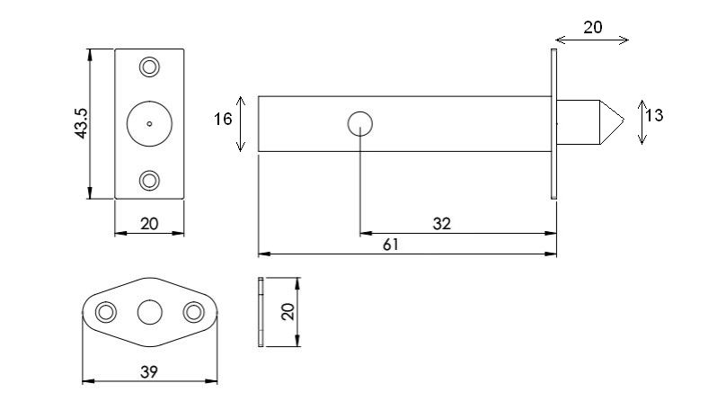 Mortice door security bolt providing secondary security. Uses a seperately supplied star key to operate.