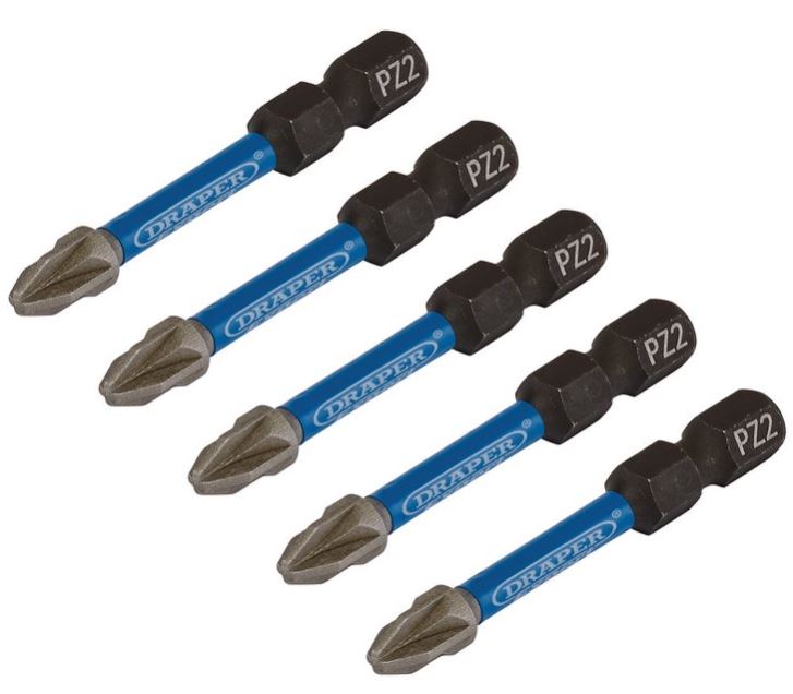 DRAPER EXPERT PZ-TYPE IMPACT SCREWDRIVER BITS, NO.2 X 50MM, 1/4″ HEX (PACK OF 5)