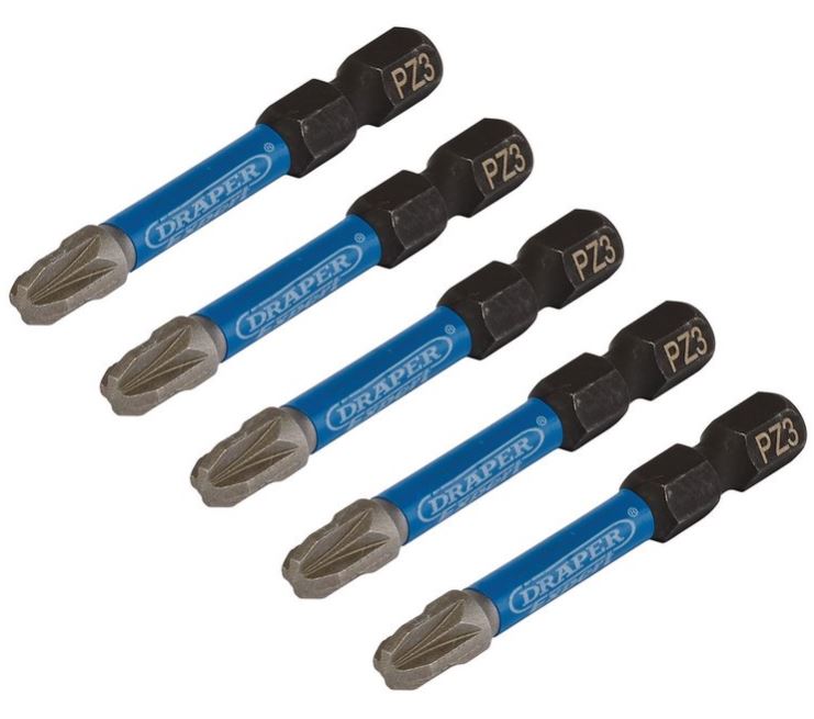 DRAPER EXPERT PZ-TYPE IMPACT SCREWDRIVER BITS, NO.3 X 50MM, 1/4″ HEX (PACK OF 5)