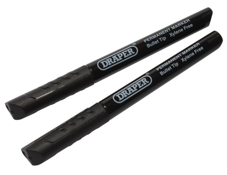 These black marker pens are suitable for marking materials such as wood, cardboard, plastic, glass, brick and metal. The pens have a fibre-tipped bullet point and are xylene free and therefore don’t have the distinctive marker pen odour. The marker pens are available as a single item and in a pack of two.