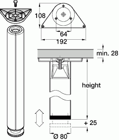 Table leg, 710 mm high, Diam: 80 mm. For supporting worktops, table tops or desks