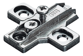 Mounting Plate, Keyhole, One Part Plate, for Häfele Metalla Concealed Mini Hinges and Refrigerator Hinges. Height 0mm. Wood screw fixing.