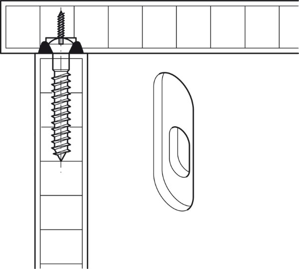 Installation: For machined-recess installation and screw fixing. For hooking onto chipboard screws with raised