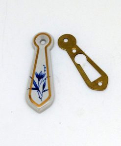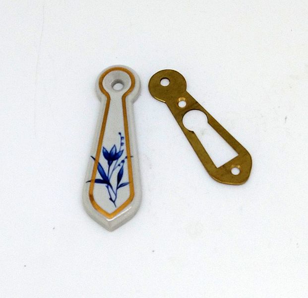 Porcelain covered cupboard escutcheons in Blue Bouquet and White. Approximately 63mm long. 2 escutcheons.