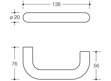 Lever handle and rose for half set, nylon, diameter 20mm, length 138mm, with continuous corrosion resistant steel core.