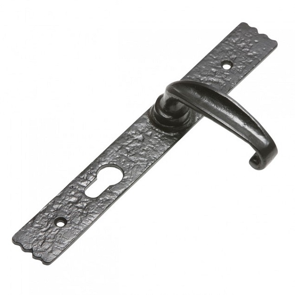Antique black malleable iron lever handle. Unsprung designed for use with Euro 3-Way Locking System. Available as 72mm or 92mm centre.