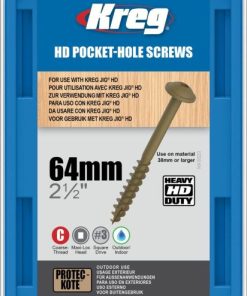 Kreg Jig HD Screws are optimized for use with the Kreg Jig HD and 1.1/2in and larger stock. These large 2.1/2in long No14 hardened-steel screws provide incredible shear-resistance and have a Protec-Kote finish with three anti-corrosion layers for long-term moisture resistance. Use No3 square driver. Will work in treated timber.