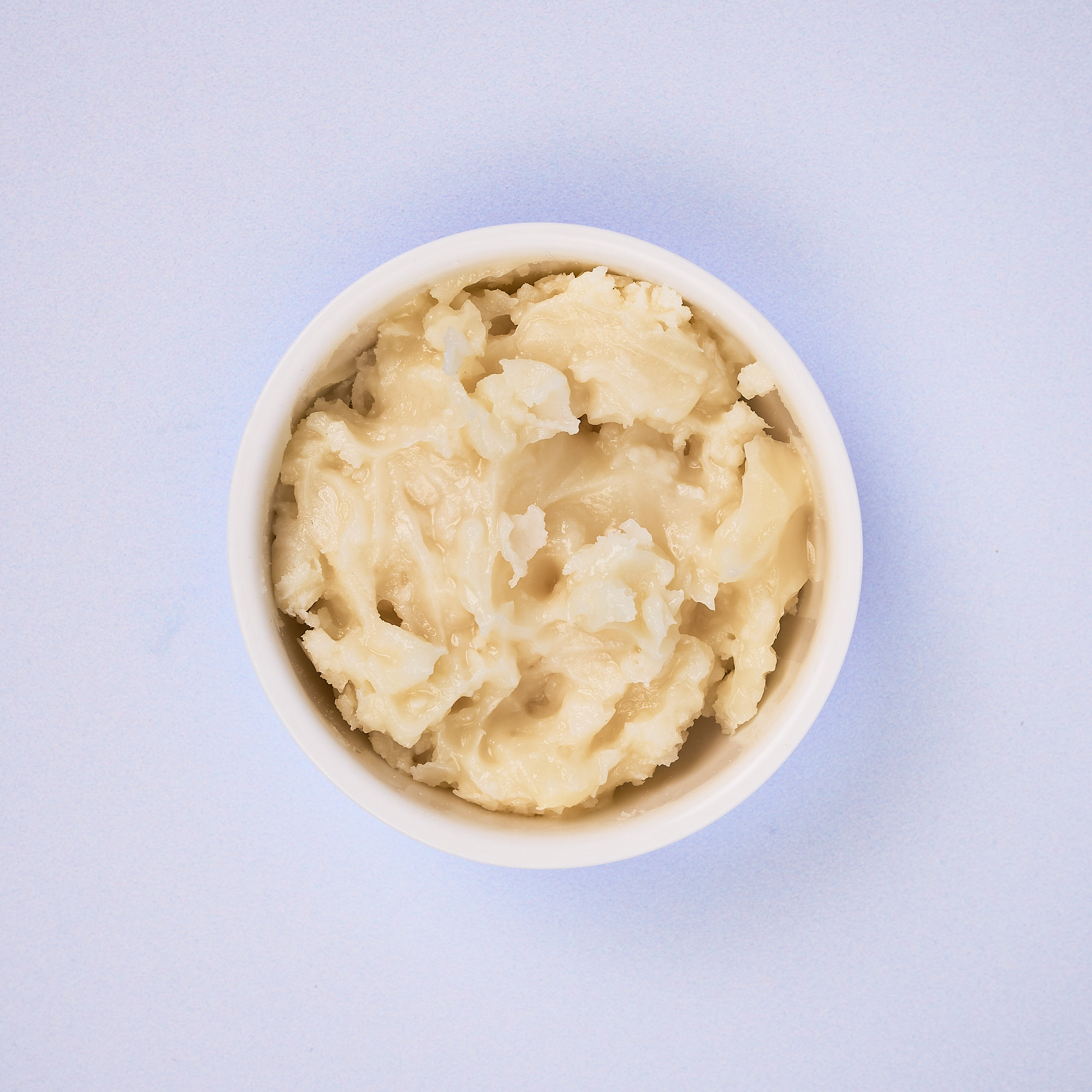 Refined & odourless: A neutral-smelling, pale yellow oil when melted; creamy white when solid.