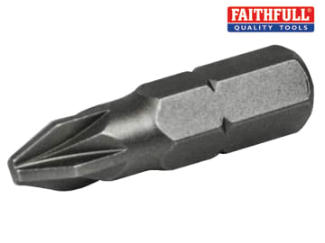 These Faithfull professional 1/4in Hex Drive Pozidriv Screwdriver Bits are manufactured from high strength, heat-treated S2 grade steel. Bits are shock and wear resistant and feature precision machined tips to provide an optimum fit, helping to prevent screw stripping and cam-out and provide a long working life.