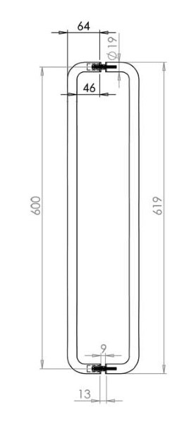 Pull Handle 600mm x 19mm Diameter Back to Back Fixings for Timber Doors