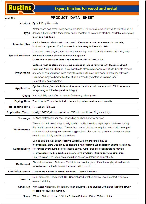 Rustins quick-drying water based acrylic clear matt varnish for interior use. 1000ml