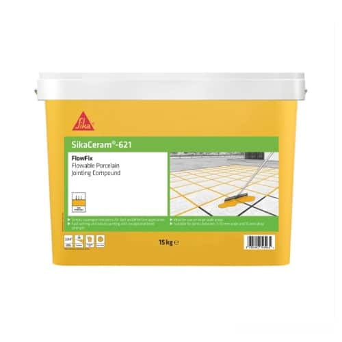 SikaCeram-621 FlowFix is a high-performance, ready-to-use (just add water) flowable joint filling and grouting compound, ideal for large areas with joints between 3-10 mm wide. Designed for fast and efficient application, it provides exceptional bond strength and a durable, non-permeable finish. With its easy squeegee application and rapid curing time, it is perfect for exterior projects, including areas exposed to vehicular traffic.