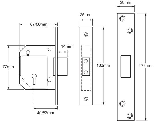 union 3g111 5 Lever High Security Mortice Deadlock (67mm, 20mm throw). Kitemarked to BS3621. Recommended by insurance companies and the police. Key operation from both sides of the door. Can be supplied to pass and is available with either single or double pole microswitch for alarm systems (See CHL3G114SPMS).