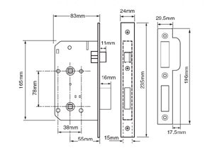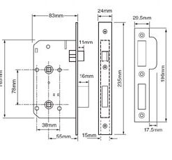 MORTICE BATHROOM LOCK 78mm CC DIN Case 55mm Backset 83mm Case Depth 5 & 8mm T/Turn Follower PB