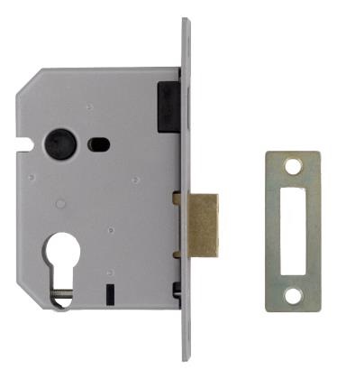 Euro Profile Mortice Deadlock. Suits wooden doors hinged on the left or right and requiring key operation only. Deadbolt locked or unlocked by cylinder key or cylinder turn. Made in the U.K. Satin Finish.