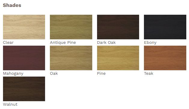 Long lasting wood protection, for all types of interior and exterior wood, low odour & non toxic, enhances the beauty of wood, resists alcohol & boiling water